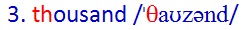 英語中的兩個舌齒音(dental) /θ/ /ð/, 是香港人普遍的發音難題. 由於廣東話沒有這兩個音, 對我們來說並不容易, 而且很多人自小便把/θ/, /ð/錯讀成/f/, /d/, 長大後要改正便覺困難. 另一方面, 我們很難單憑TH字母得知應讀/θ/還是/ð/音. 以thousand為例, 大多數香人會把th部份錯讀成/d/音, 就算部份懂得發舌齒音的, 把thousand的th讀成/ð/音亦不正確. 應該發/θ/才對. 請細心聆聽以上示範, 留意2(thou)及3(thousand)的第一個音是相同的.