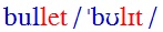 1. 留意bullet一字的第二音節-let用弱音(schwa). 並不等同bull加上let (學習字母拼音phonics的本港學生很易讀錯!)